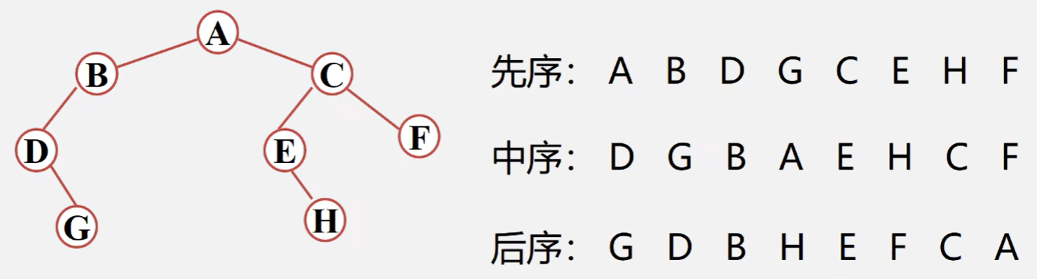 先根遍历:先访问根结点,再遍历各子树