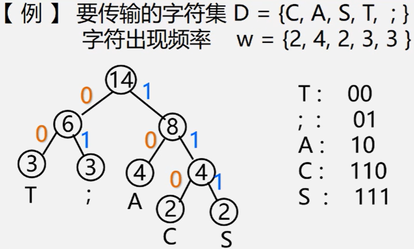 - 哈夫曼树带权路径长度最短的性质保证了字符编码的总长最短